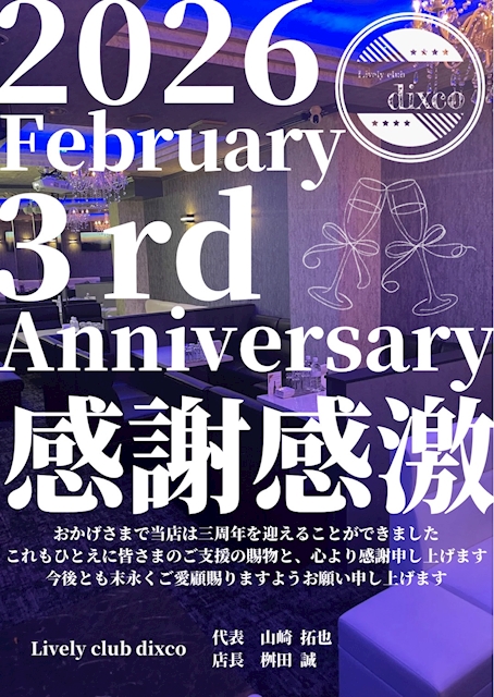 お客様・キャスト・スタッフという垣根を越えて誰もが心を通わせ、思わず笑顔がこぼれるような憩いの場…そんなリラックス空間をお届けする、祇園のラウンジ「Lively club dixco(ライブリークラブディスコ)」。