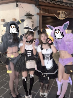 こんにちは🩷 れみです🧸🎀 昨日はお化けの日👻 女の子達と店長と写真撮ったよ📸✨ みんな色んなコスプレしてて可愛かった💖 次コスプレする時は新しいの買おうかな〜 21時半から〜🩵